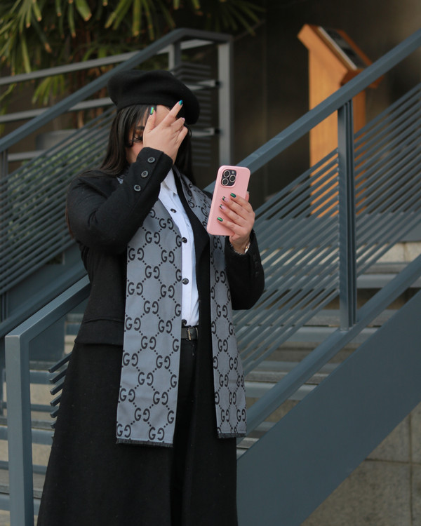شال گردن زنانه برند گوچی طوسی کد ۱۱۹۰